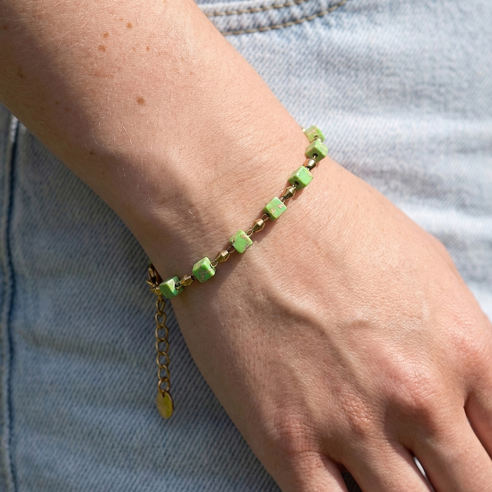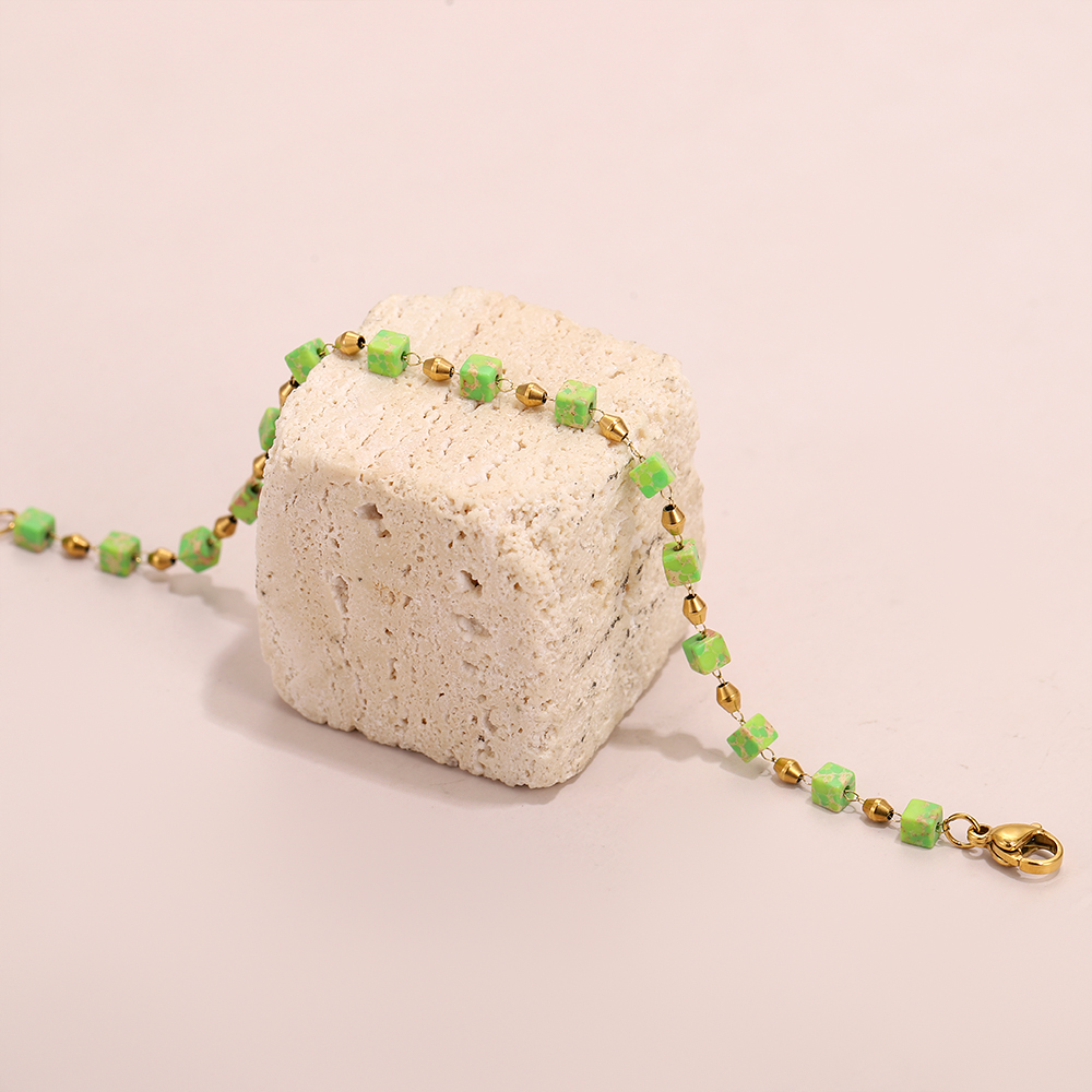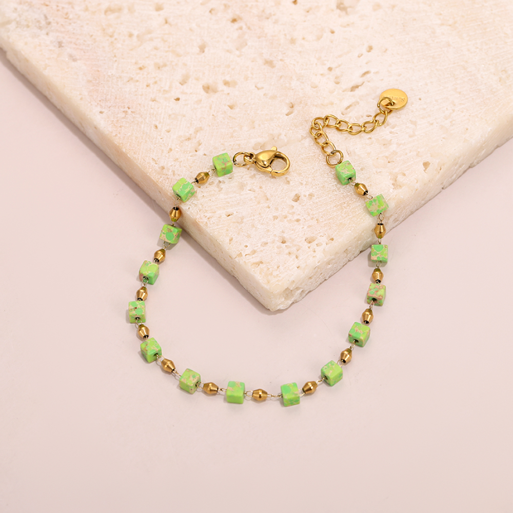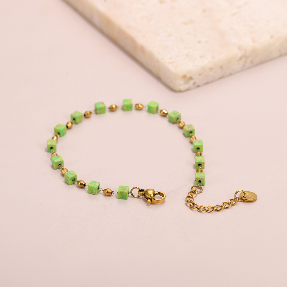 * Green Cube Beads: Fresh apple green with subtle variegated textures, made of natural stone.