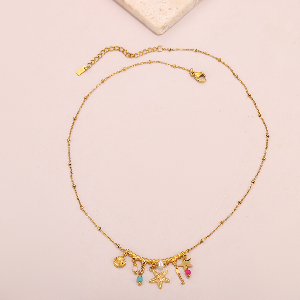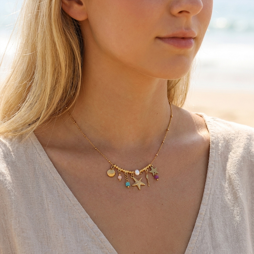Metal Parts: Stainless steel plated with 14K gold for a smooth luster; starfish shells with embossed textures enhance the three-dimensional effect.