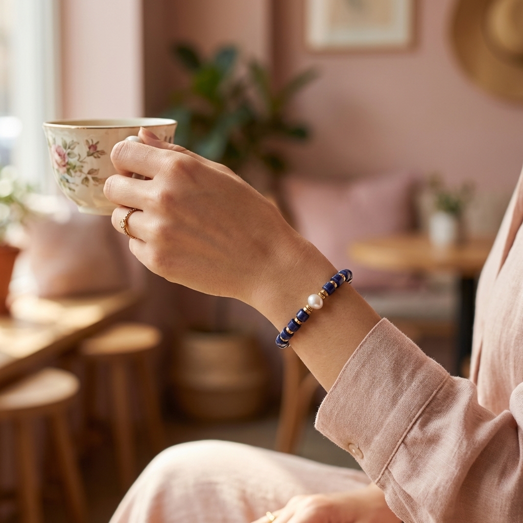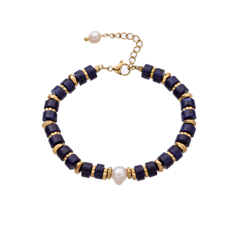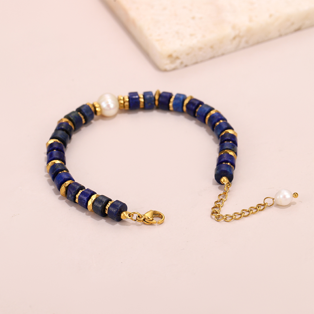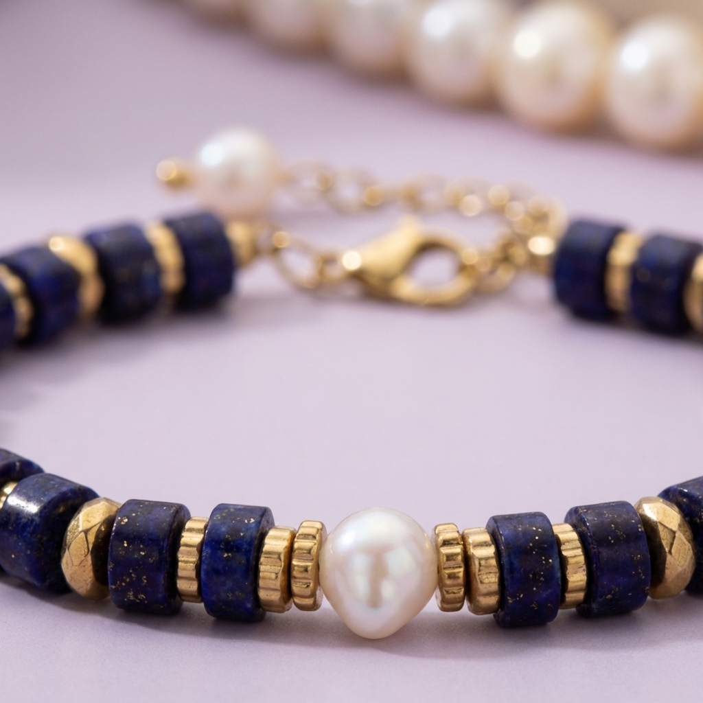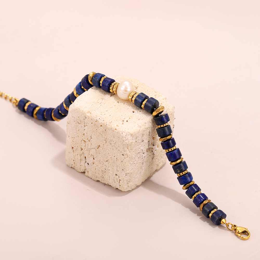 Classic Combination: Deep blue beads + gold spacers + white pearl, creating a striking color contrast.