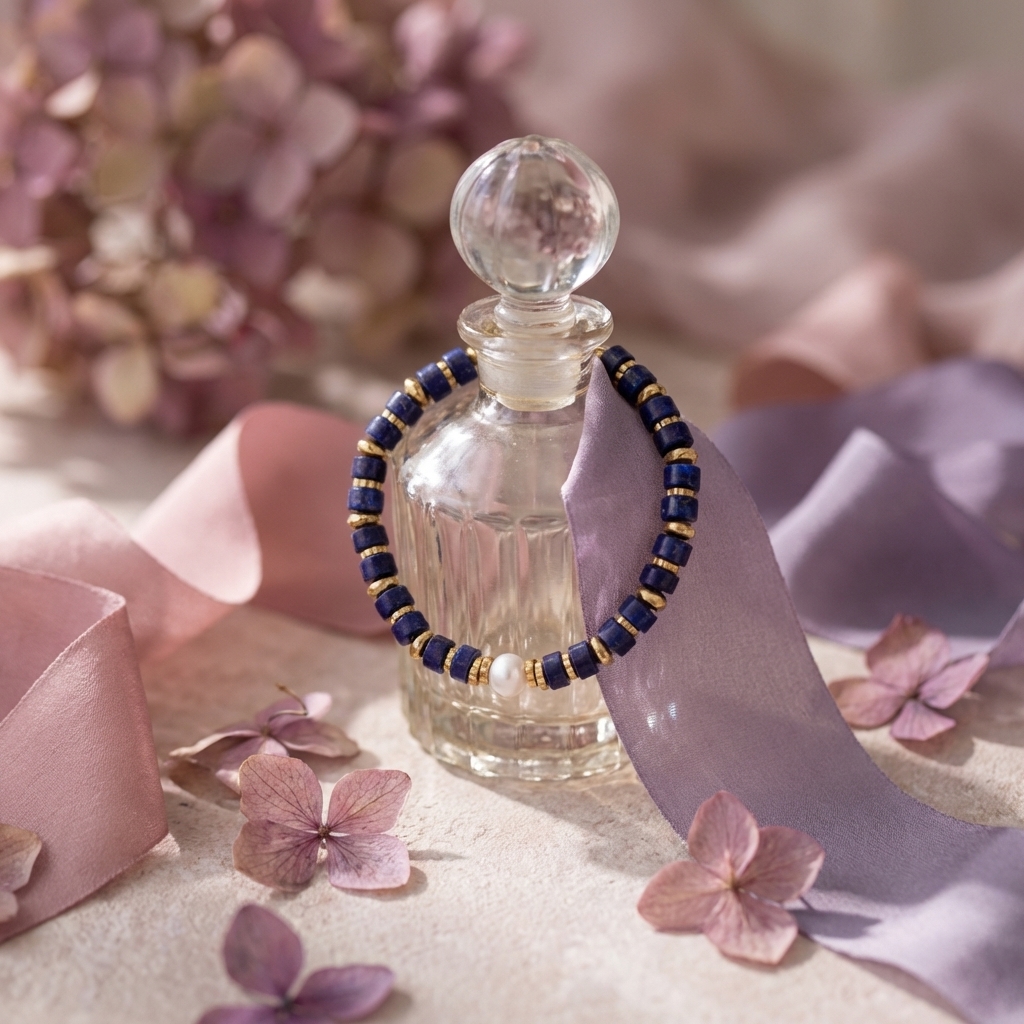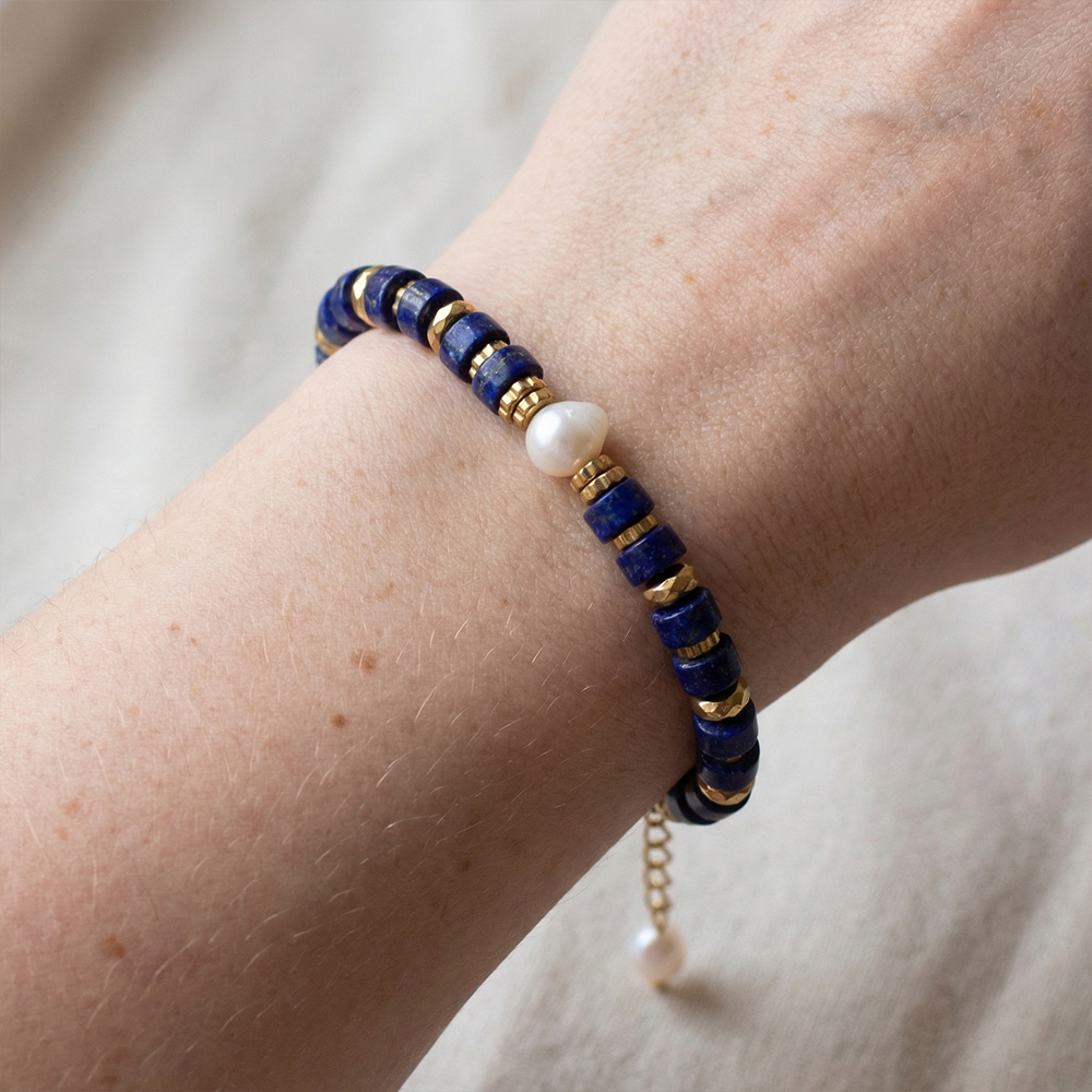 The deep blue lapis lazuli has a calming quality, further enhanced by the gold accents.