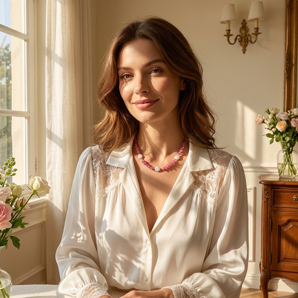 Accompaniment Color: Metallic gold provides visual brightness, balancing the softness of the pink and white color scheme.