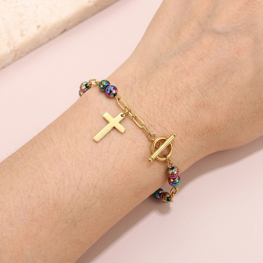 Signature Design: The bracelet features a gold cross pendant, becoming the visual focal point.